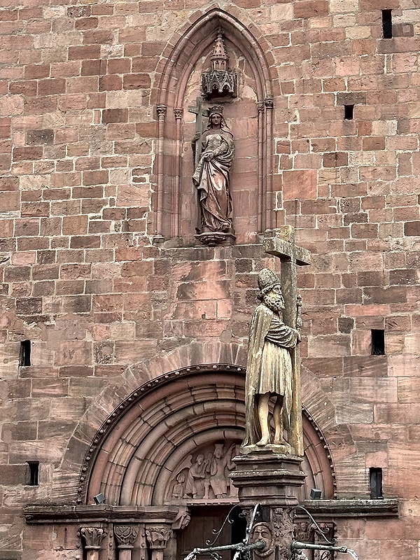 L’église de Kaysersberg, situé à côté de la fontaine, est aussi dévouée à cette tradition de la vraie croix. On peut apercevoir une statue d’Hélène, portant aussi une croix, dans une niche au-dessus du portail de l’église.