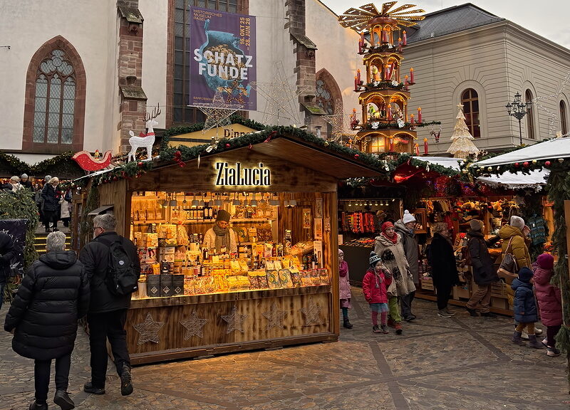 Ce marché de Noël est surmonté d’une pyramide de Noël, crèche tournante à plusieurs étages, représentant la Nativité. Ce type de crèche trouve son origine dans les années 1830 en Allemagne voisine. Sous cette pyramide se trouve un stand, dans lequel, vous pouvez prendre du vin chaud ou un chocolat chaud si vous ne buvez pas d’alcool.