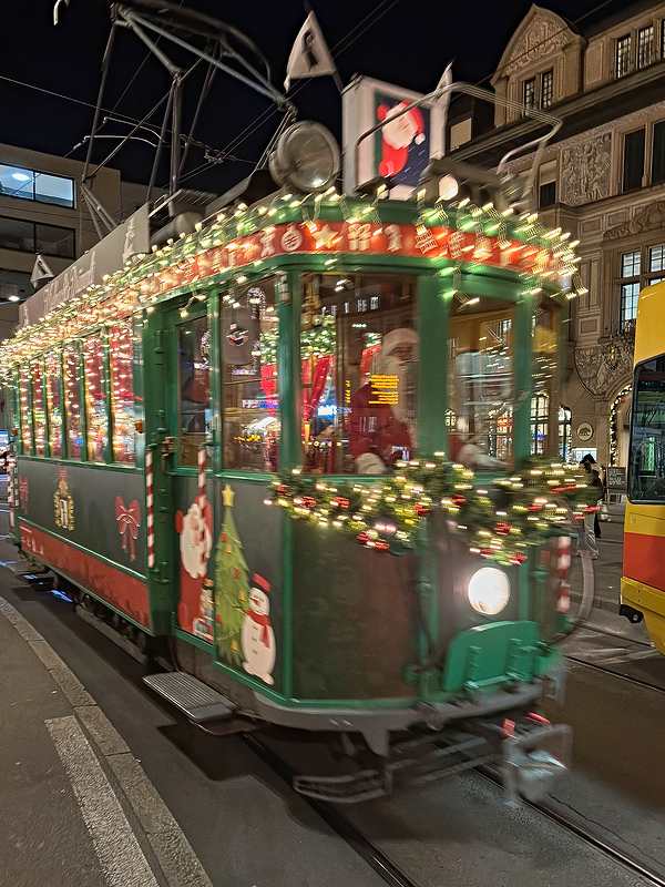 En plus du marché de Noël, vous trouverez dans la ville de Bâle de multiples chorales chantants des chansons de Noël. Les rues sont également illuminées le soir avec de nombreuses guirlandes lumineuses. Si vous avez de la chance, vous pourrez aussi peut-être voir circuler, le tramway du père Noël, un ancien tram faisant partie du patrimoine de la ville, spécialement décoré pour Noël, qui permet aux enfants de faire un tour dans la vieille ville, conduits par le père Noël.