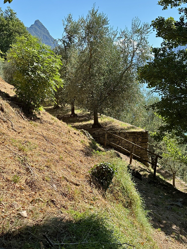 Le chemin longe ensuite le relief et passe entre des villas, des jardins, des zones sauvages et des oliveraies, le tout avec un dénivelé modéré.